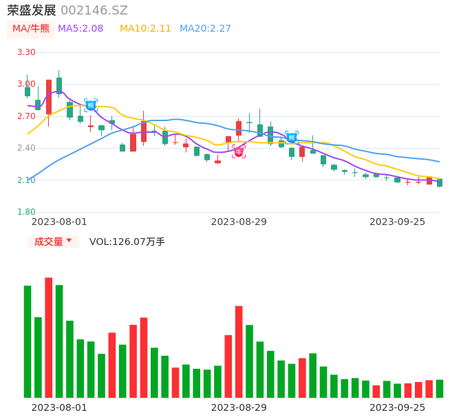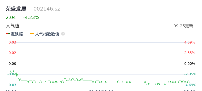 09月25日,荣盛发展收报2.04,股价涨幅-4.23%,成交金额2.59亿元,换手率3.23%。