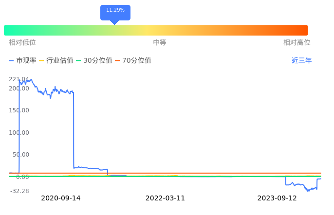 2023年09月12日,荣盛发展下跌0.91%收于2.18,今日成交金额2.82亿元。下文将从市盈率PETTM、市净率PB、市现率3个角度去分析公司估值情况。