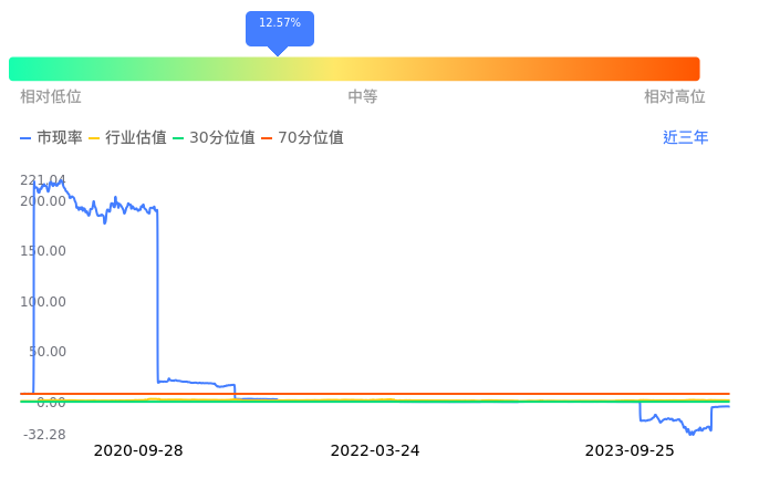 荣盛发展当前市盈率PETTM为-0.64,在所属的房地产开发中,市盈率PETTM排61名。前5名分别为沙河股份PETTM4.53、京基智农PETTM4.96、南京高科PETTM5.15、金地集团PETTM5.49、津滨发展PETTM5.63。从PETTM估值走势数据来看,荣盛发展当前市盈率PETTM为-0.64,超过近3年39.25%的历史数据。