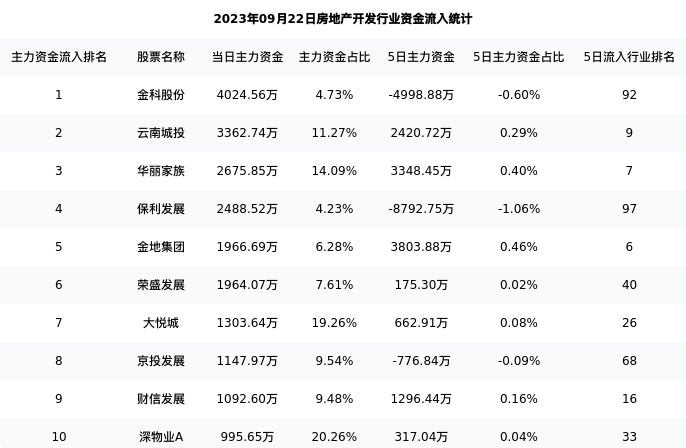 从主力资金流向来看,房地产开发行业今日主力资金流入51.30亿元,在所有申万二级行业中排名:45/131。