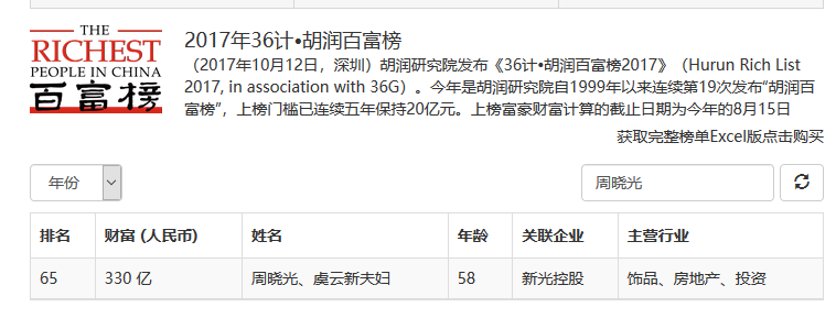 在公司运营情况良好之下,周晓光本人也因公益事业而获得多个荣誉,并成为第十、第十一届全国人大代表。公开信息显示,在任全国人大代表的前9年中,周晓光共向全国人大提交议案232份、建议198份,其中203份议案、189份建议被正式采纳。2017年,周晓光、虞云新夫妇以330亿的资产排在胡润百富榜第65位。