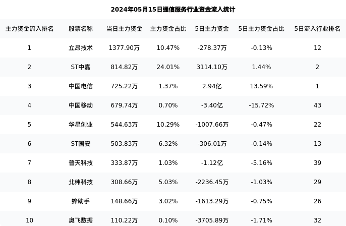 从主力资金流向来看,通信服务行业今日主力资金流入20.46亿元,在所有申万二级行业中排名:78/131。