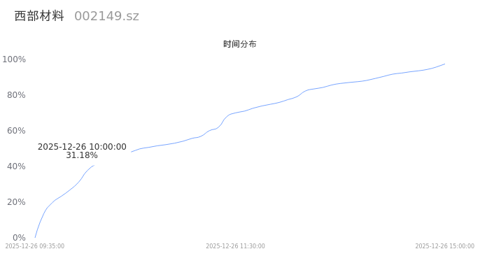 002149西部材料2025年12月26日成交154.92万手,成交金额71.31亿,相较昨日放量28.02万手,换手率31.74%,成交活跃。