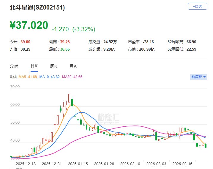 A股异动丨北斗星通跌逾4% 2025年净亏损2.57亿元