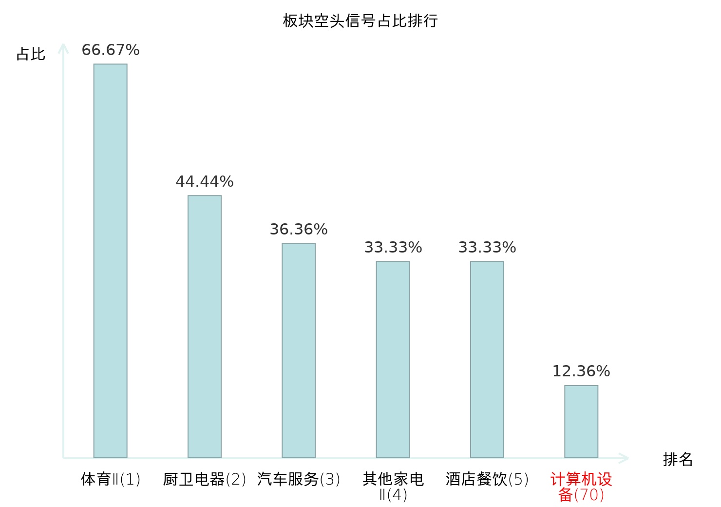 全市场所有行业板块中主力空头信号占比排名中,体育Ⅱ板块位居第一。综合Ⅱ板块名次提升最快,较昨日上升106位。