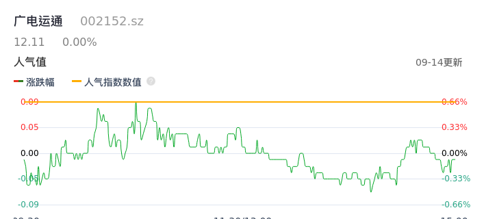 09月14日,广电运通收报12.11,股价涨幅0.00%,成交金额1.53亿元,换手率0.51%。