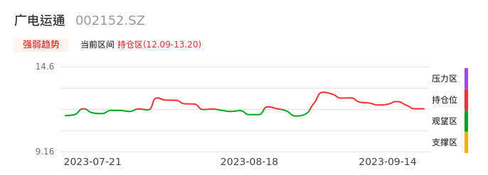我们来看一下该股的九方特色指标强弱趋势的情况:广电运通自08月29日从观望区上穿到持仓区。股价近期在多头区域持续强势上扬,上升动能仍较为充足,可积极关注。后续重点关注上方压力位:13.20元是否能突破上攻。