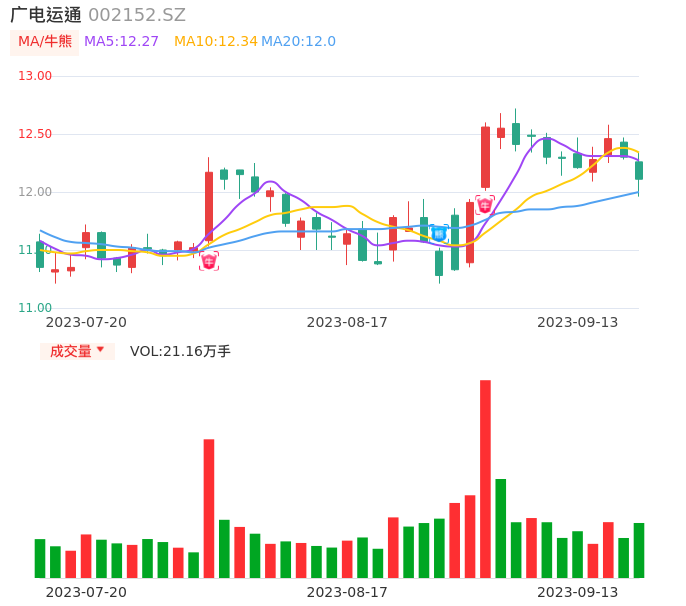 09月13日,广电运通收报12.11,股价涨幅-1.54%,成交金额2.56亿元,换手率0.85%。