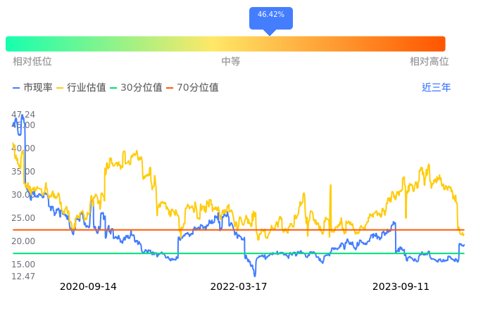 2023年09月11日,广电运通上涨1.47%收于12.46,今日成交金额2.66亿元。下文将从市盈率PETTM、市净率PB、市现率3个角度去分析公司估值情况。