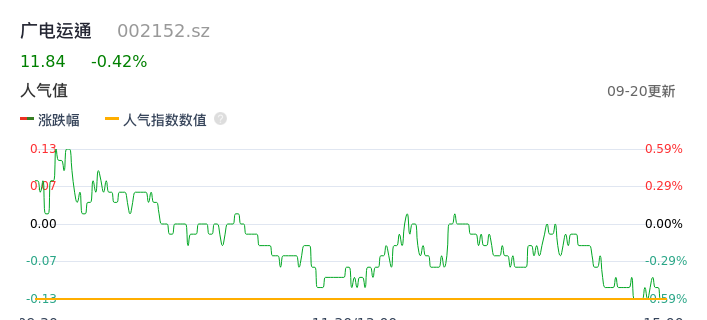 09月20日,广电运通收报11.84,股价涨幅-0.42%,成交金额1.15亿元,换手率0.39%。