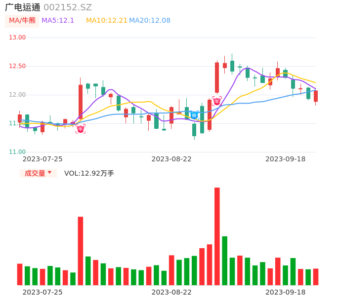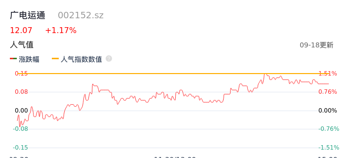 09月18日,广电运通收报12.07,股价涨幅1.17%,成交金额1.55亿元,换手率0.52%。
