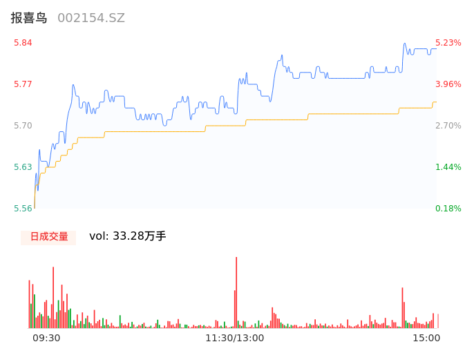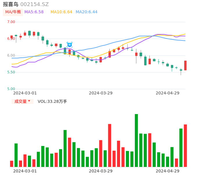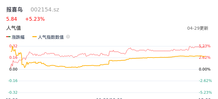04月29日,报喜鸟收报5.84,股价涨幅5.23%,成交金额1.91亿元,换手率2.83%。