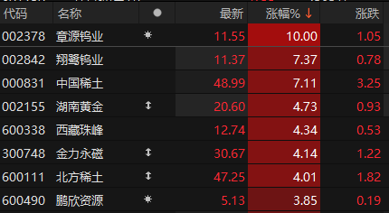 上证报中国证券网讯 8月21日早盘,有色金属板块异动拉升。截至9时42分,章源钨业涨停。翔鹭钨业、中国稀土涨超7%,湖南黄金、西藏珠峰等涨逾4%。
