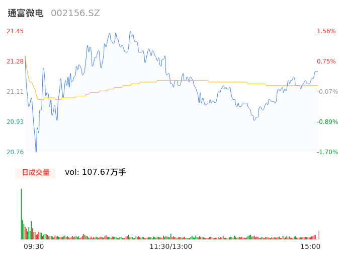 04月29日,通富微电收报21.22,股价涨幅0.47%,成交金额22.77亿元,换手率7.10%。