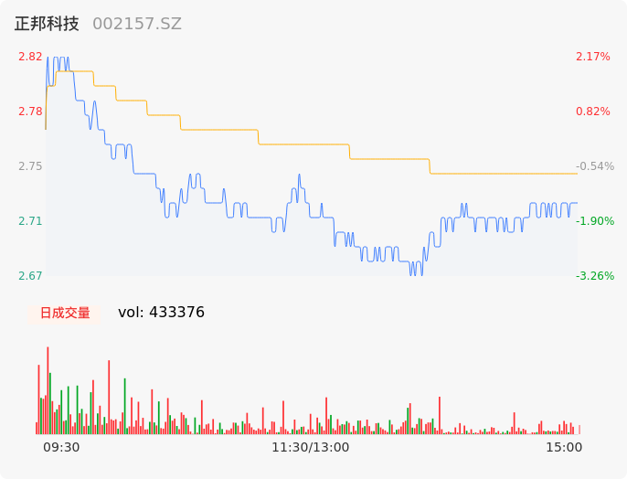 04月25日,正邦科技收报2.72,股价涨幅-1.45%,成交金额1.19亿元,换手率1.78%。