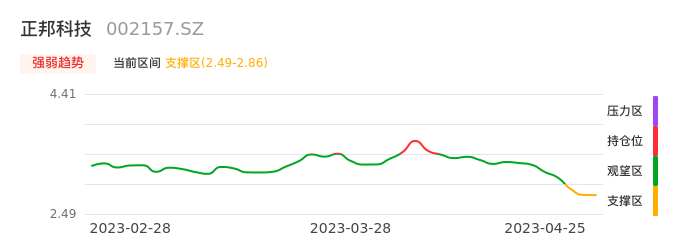 我们来看一下该股的九方特色指标强弱趋势的情况:正邦科技近日从观望区进入支撑区。股价出现一波快速下跌行情,目前下跌动能仍未衰竭。建议继续谨慎观望。注意今日下方支撑位:2.49元,如有效跌破将可能出现新一轮下跌