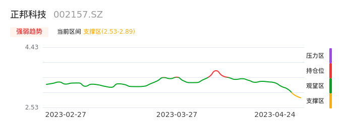 我们来看一下该股的九方特色指标强弱趋势的情况:正邦科技近日从观望区进入支撑区。股价出现一波快速下跌行情,目前下跌动能仍未衰竭。建议继续谨慎观望。注意今日下方支撑位:2.53元,如有效跌破将可能出现新一轮下跌