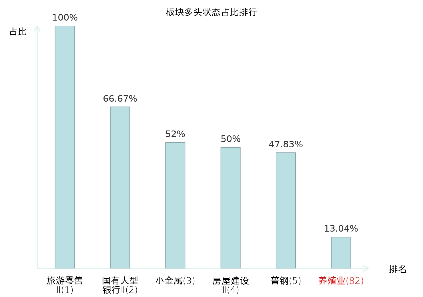 全市场所有行业板块中主力多头状态占比排名中,旅游零售Ⅱ板块位居第一。其他电源设备Ⅱ板块名次提升最快,较昨日上升55位。