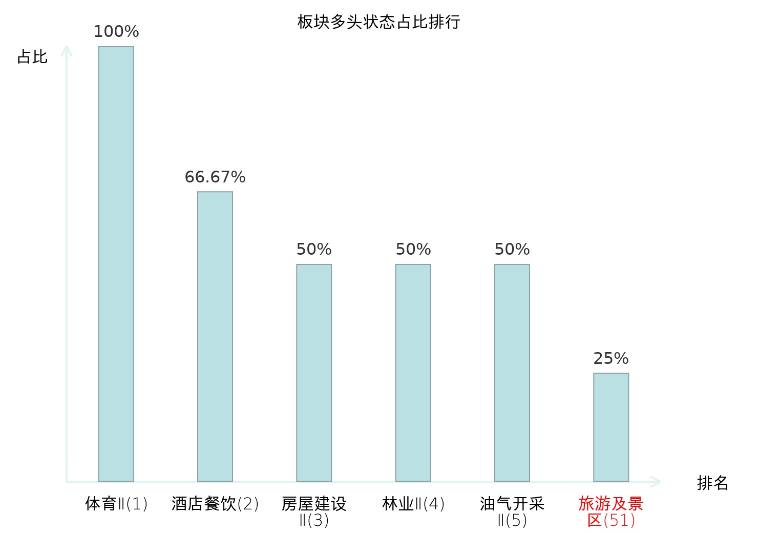 全市场所有行业板块中主力多头状态占比排名中,体育Ⅱ板块位居第一。国有大型银行Ⅱ板块名次提升最快,较昨日上升100位。