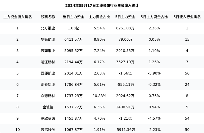 从主力资金流向来看,工业金属行业今日主力资金流入67.92亿元,在所有申万二级行业中排名:59/131。