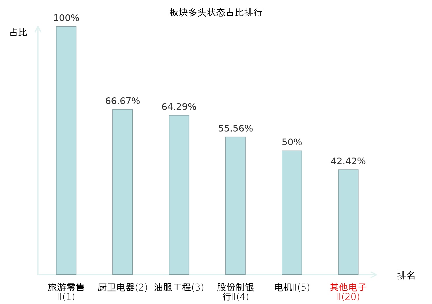 全市场所有行业板块中主力多头状态占比排名中,旅游零售Ⅱ板块位居第一。航海装备Ⅱ板块名次提升最快,较昨日上升78位。