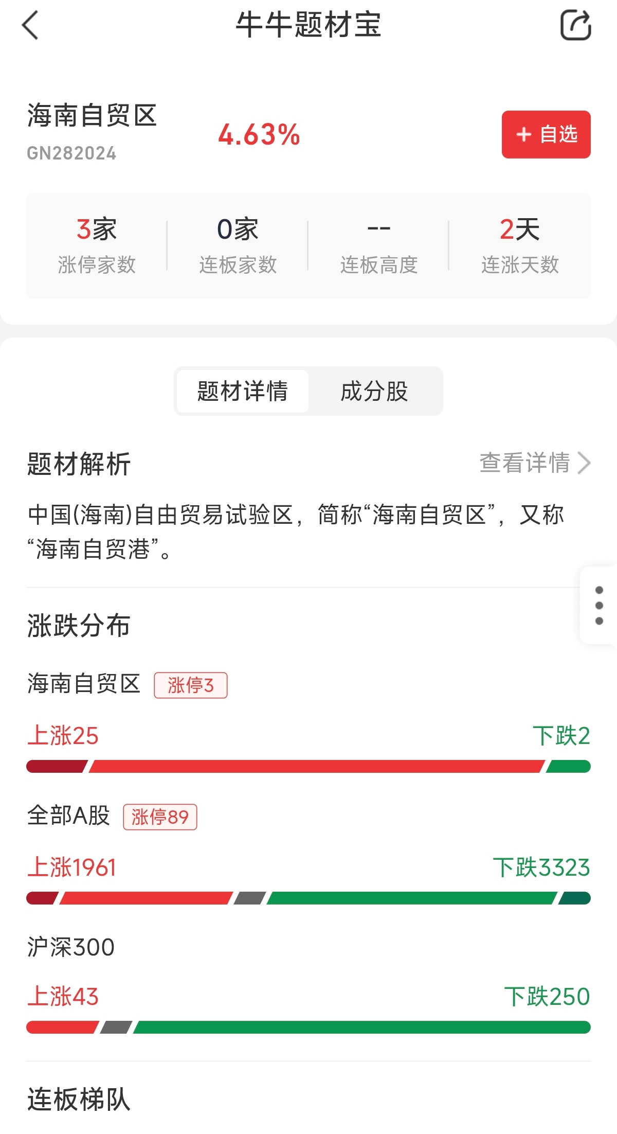 2025年11月14日,海南自贸港概念板块在A股中逆势走强,板块整体涨幅达2.76%,多支个股涨停。