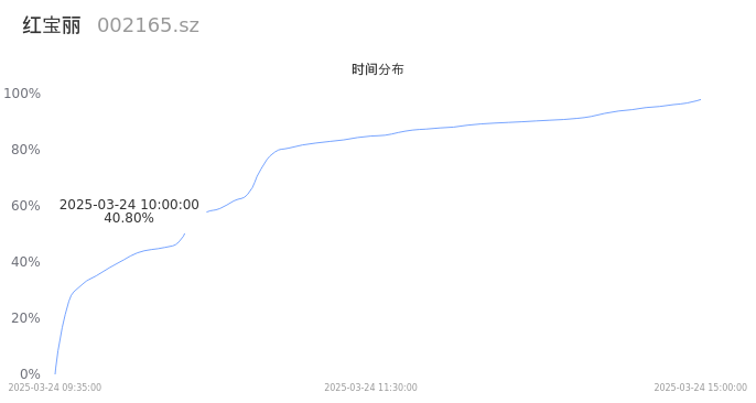 002165红宝丽2025年03月24日成交283.01万手,成交金额16.04亿,相较昨日放量178.40万手,换手率38.89%,成交活跃。