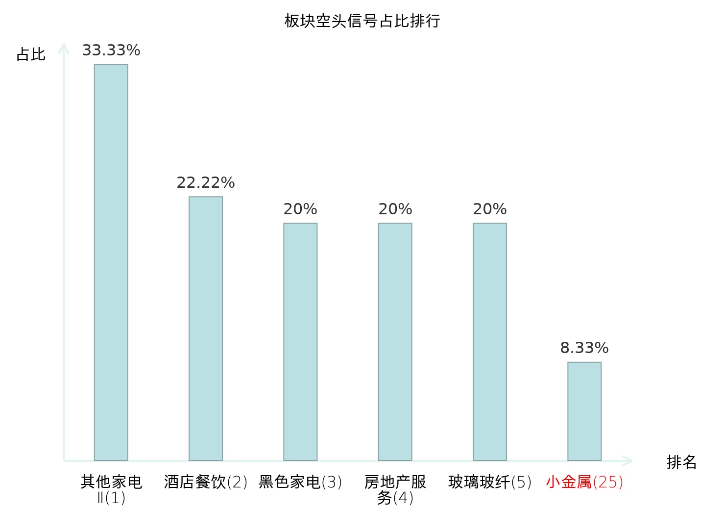 从主力宝信号数据分析,东方锆业所属的小金属板块中共有2只股票发出主力空头信号,主力空头信号占比在全行业中排名第25位,较昨日上升82位。较高的排名表明主力当日卖出意愿较强,而排名的上升可能反映了主力对该板块态度的变化。全市场所有行业板块中,其他家电Ⅱ板块的主力空头信号占比最高,位居第一。家居用品板块名次提升最快,较昨日上升111位。这些变动揭示了不同行业间主力资金动向的趋势,为投资者提供了关于市场情绪和潜在风险的重要线索。
