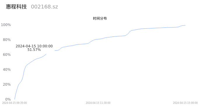 002168惠程科技2024年04月15日成交27.92万手,成交金额9697.62万元,相较昨日放量21.41万手,换手率3.57%,成交清淡。