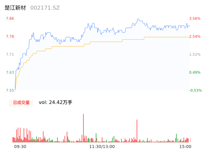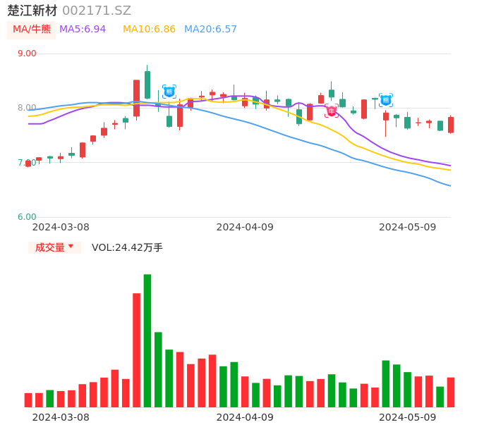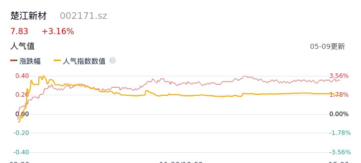 05月09日,楚江新材收报7.83,股价涨幅3.16%,成交金额1.90亿元,换手率1.89%。