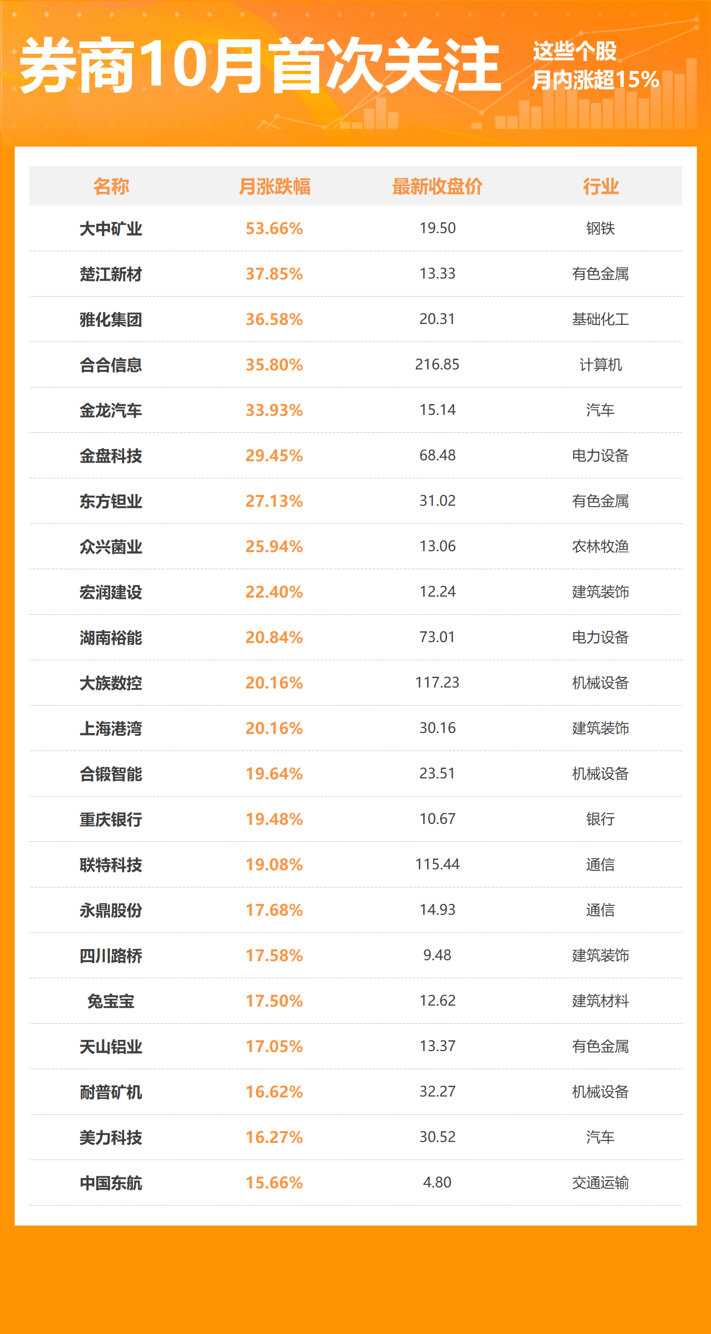 10月262股获券商首次关注!这只股距目标价还有35%上涨空间