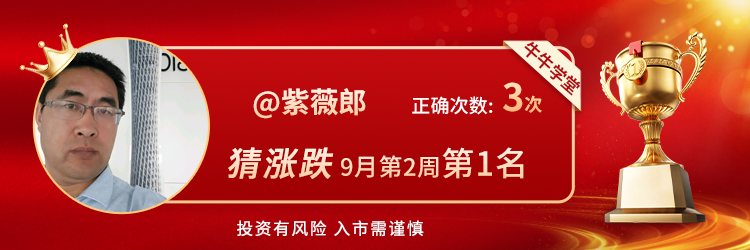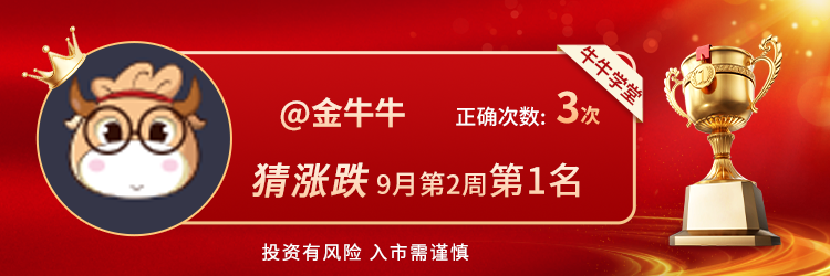 2、大家期待的【猜涨跌】活动已上线,在圈子内点击对话框上方【猜涨跌】了解详情!本周冠军:金牛牛、紫薇郎