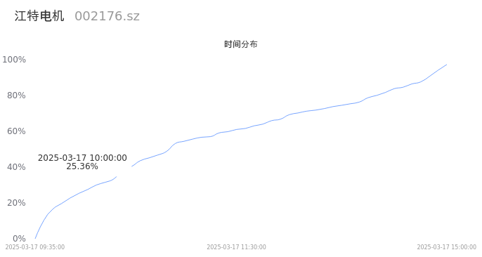 002176江特电机2025年03月17日成交30.12万手,成交金额2.45亿,相较昨日缩量6.17万手,换手率1.77%,成交清淡。