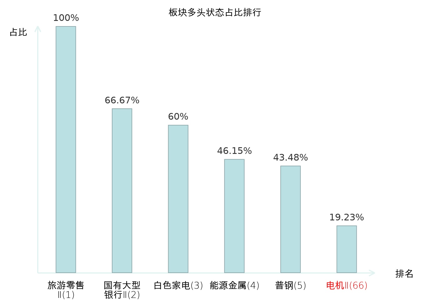 全市场所有行业板块中主力多头状态占比排名中,旅游零售Ⅱ板块位居第一。光学光电子板块名次提升最快,较昨日上升59位。