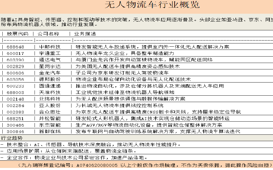2、板块题材上,依旧看好无人驾驶的概念,这个是产业投资机会,虽然短期龙头个股,德邦股份有冲高回落风险,不过后排的投资品种已经可以保持关注,具体逻辑明显如下如下: