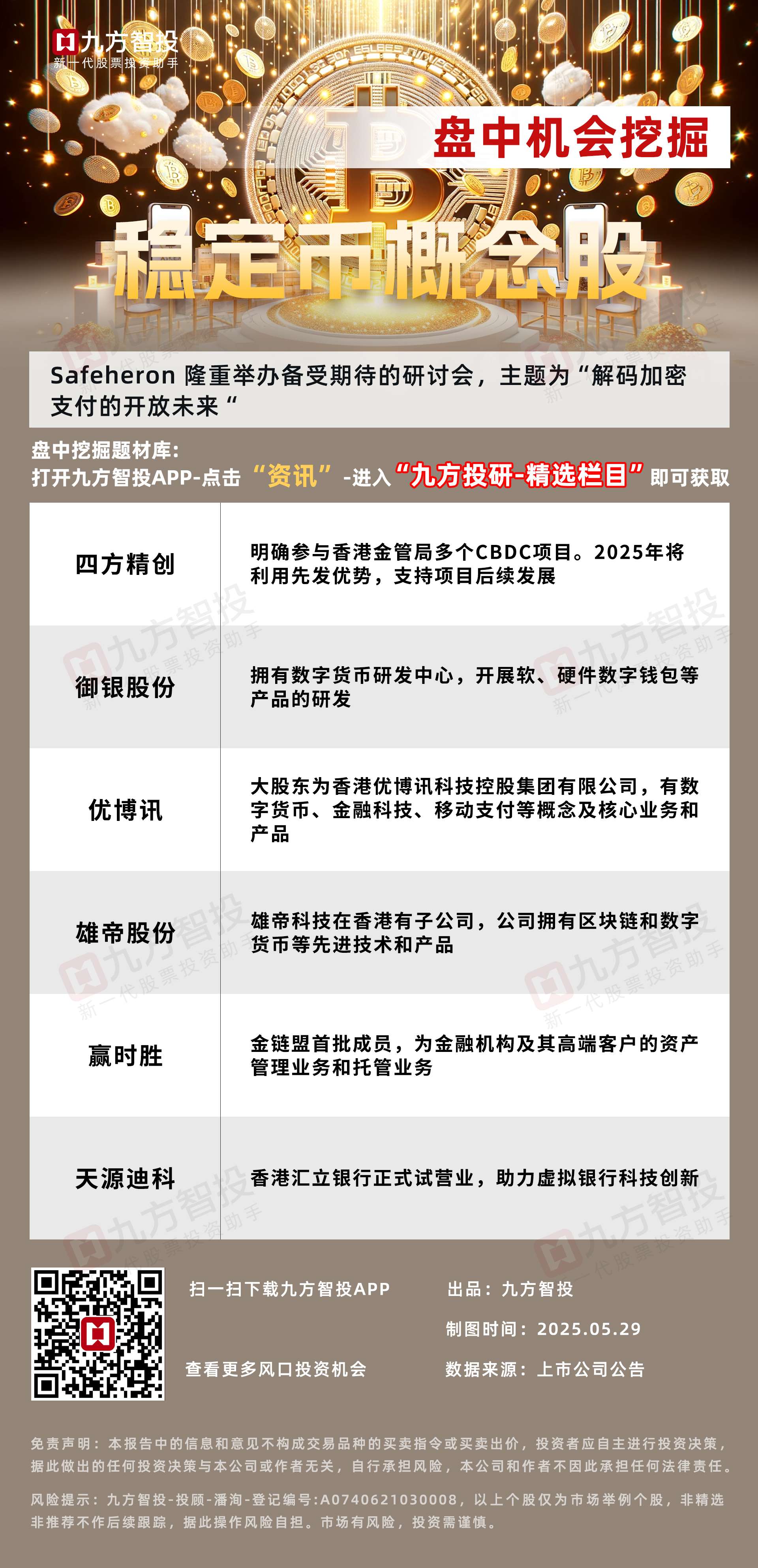 数字货币/跨境支付:解码加密支付圆桌会:稳定币是场景化应用落地的关键之钥即将召开,稳定币是指追求币值相对稳定的一种加密货币;跨境银行间支付清算公司CIPS)与阿联酋央行签署跨境支付合作备忘录;