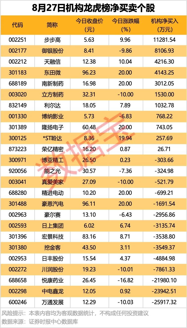 机构净卖出个股中,万通发展遭机构净卖出2.59亿元,居首;其次是中电鑫龙、悦康药业,分别遭净卖出2.39亿元、2.2亿元。