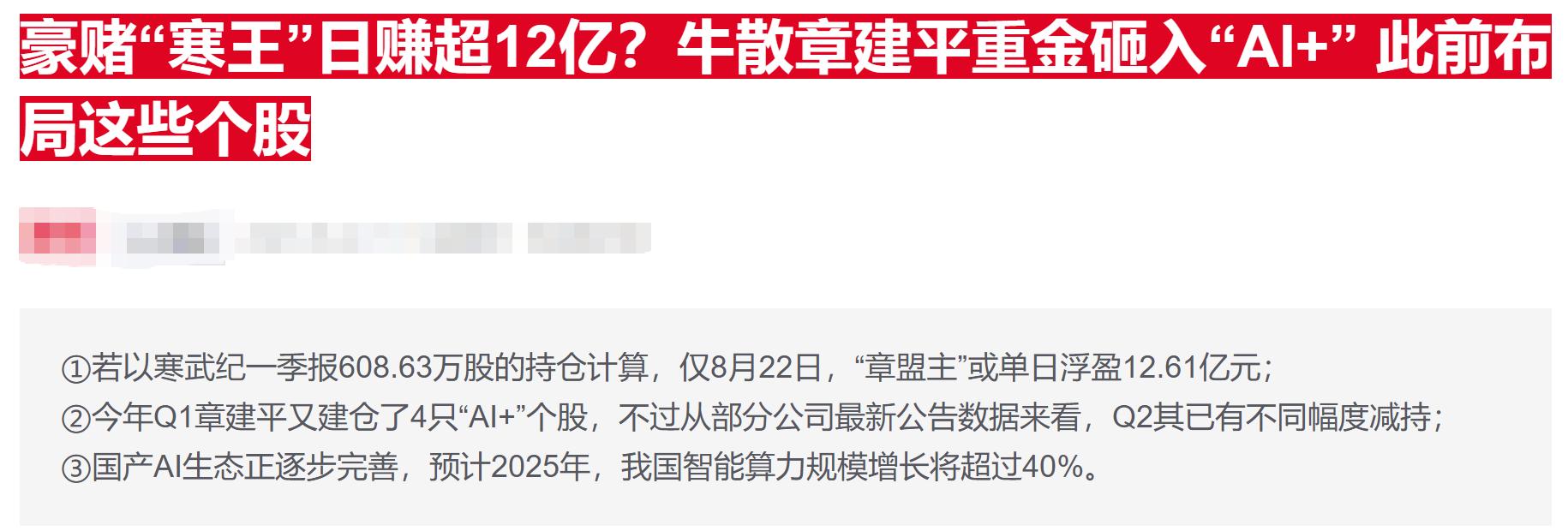 之前跟朋友们讲了这两个策略属于是谁都能参与的上的“傻瓜”策略,但是怎么百亿牛散章建平也躺在AI芯片里↓