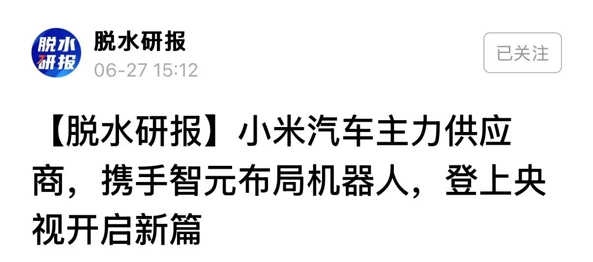 我在【脱水研报】栏目分享的宁波华翔,就是合作智元机器人的,今天直接一字板涨停。