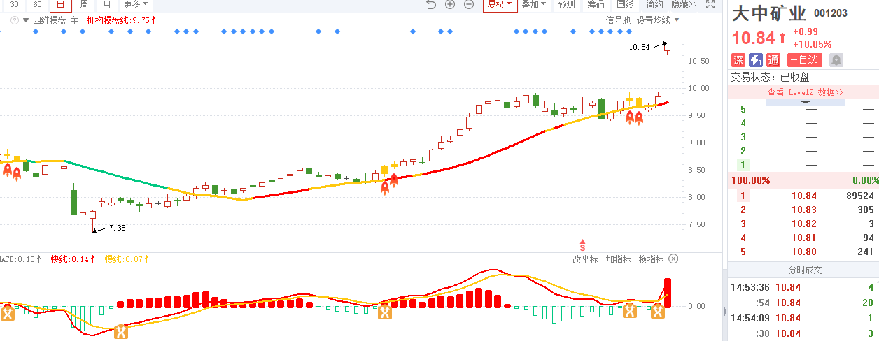3)大中矿业-四维操盘-近期出现火箭信号且底部量柱由绿转红