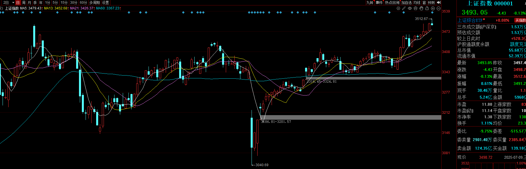 沪指冲上了3500点,已经突破了去年924国庆节后的那波最高点3489.78点。但从今天的分时图看,市场整体还是处在震荡中。