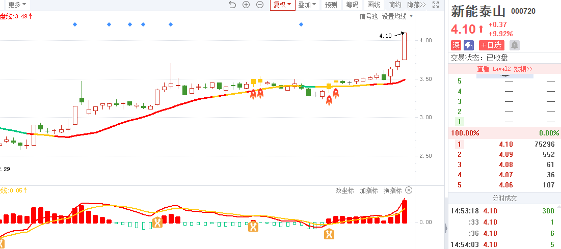 1)新能泰山-四维操盘-近期出现火箭信号且底部量柱由绿转红