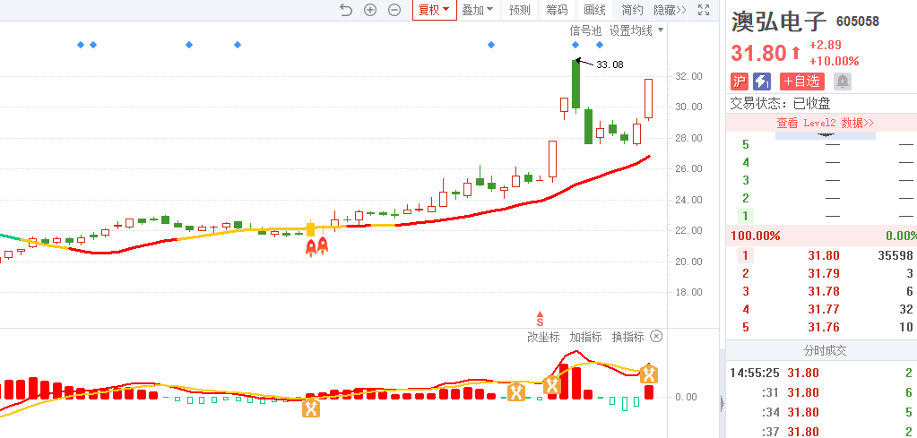 2)澳弘电子-四维操盘-近期出现火箭信号且底部量柱由绿转红