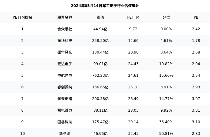 从估值角度看:中航光电最新市盈率PETTM为24.61,在行业内排名5/60,处于15.60分位。