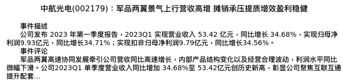 值得注意的是:2023年05月长江证券的王贺嘉分析师,首次发布关于中航光电的研究报告,标题为:中航光电(002179):军品两翼景气上行营收高增 摊销承压提质增效盈利稳健。