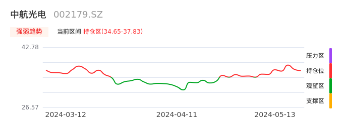 我们来看一下该股的九方特色指标强弱趋势的情况:中航光电自04月22日从观望区上穿到持仓区。股价近期在多头区域回调整理。后续重点关注多空分界点的争夺:34.65元。如未能有效站稳则可能重新回到空头行情。