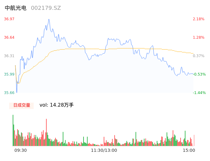 05月13日,中航光电收报36.06,股价涨幅-0.33%,成交金额5.19亿元,换手率0.69%。
