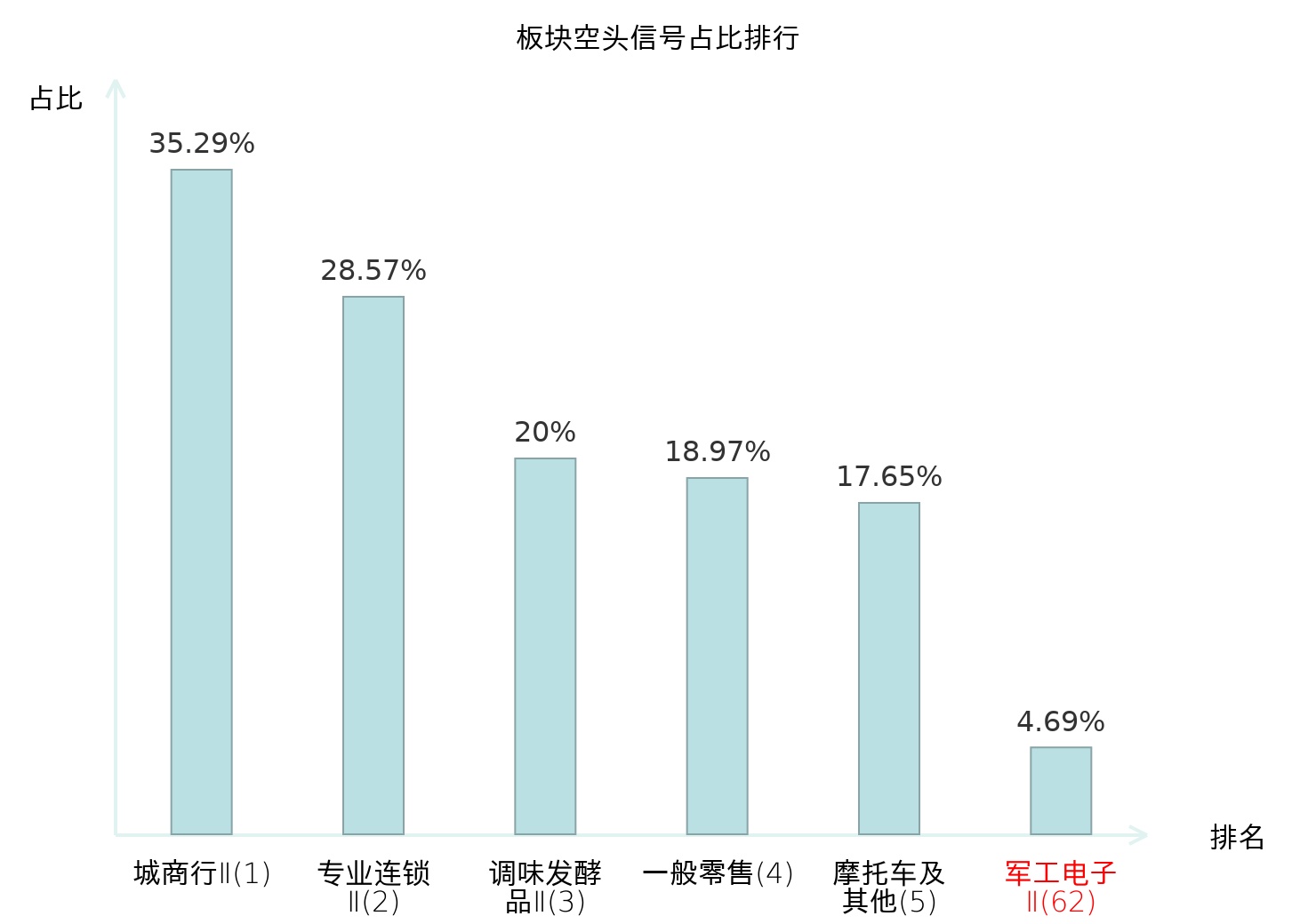 全市场所有行业板块中主力空头信号占比排名中,城商行Ⅱ板块位居第一。炼化及贸易板块名次提升最快,较昨日上升96位。