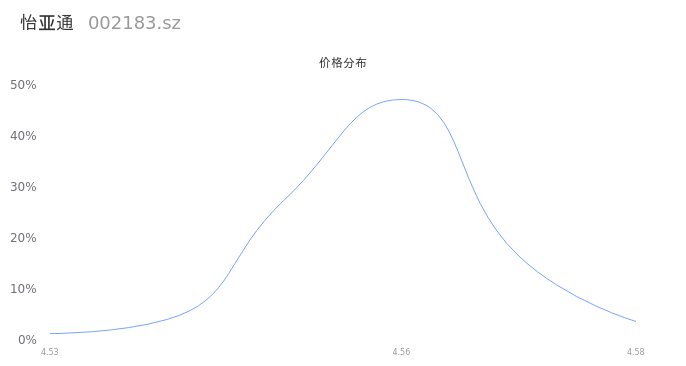 然后我们来看下当日成交的价格分布。经过分析发现,该股票当日成交价格波动低于10个最小波动价位,由于可以参考的样本量非常少,价格分布分析的结果不具有指导意义,下图仅供参考。