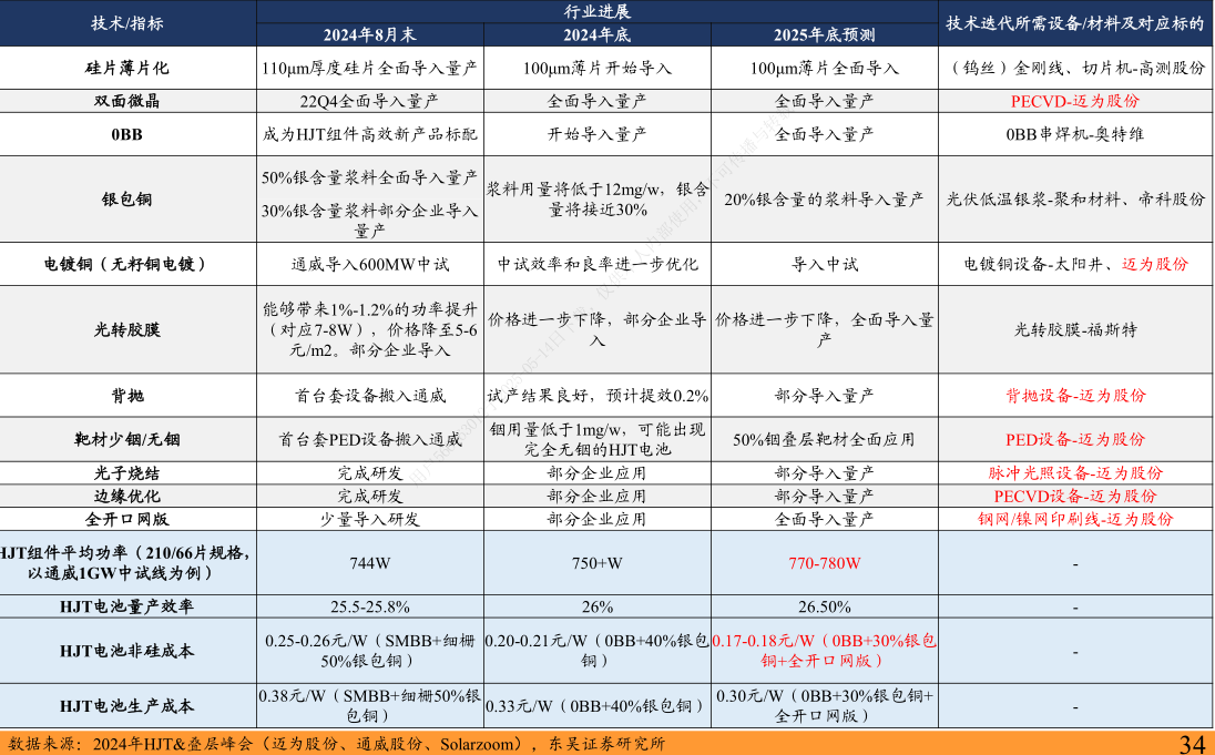 2025年有望迎来HJT多维降本增效技术的集中量产,新建产线功率有望突破770W